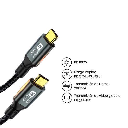 Cable USB C a USB C Thunderbolt 8K (2 metros)